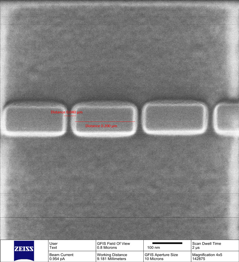 用FIB技術在微管道中加工出的納米結構。